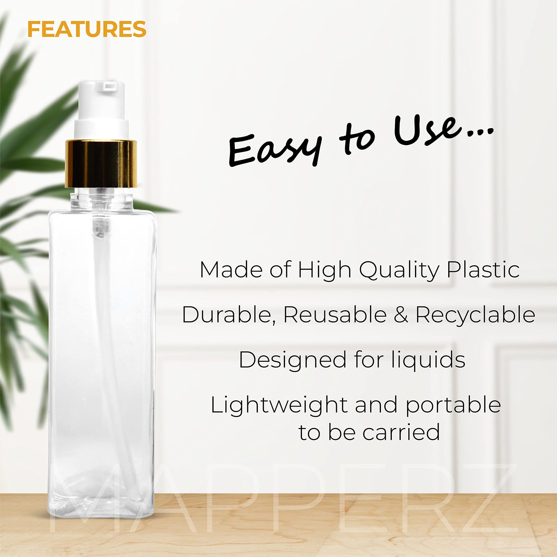 - Package Content:- 3 Rectangular Container Applicator Plastic Bottle,1 Pump Liquid Dispenser, 1 Mist Sprayer Cap Dispenser, 1 Flip Top Cap, 1 Root Comb Applicator Nosel, 100 ml Capacity