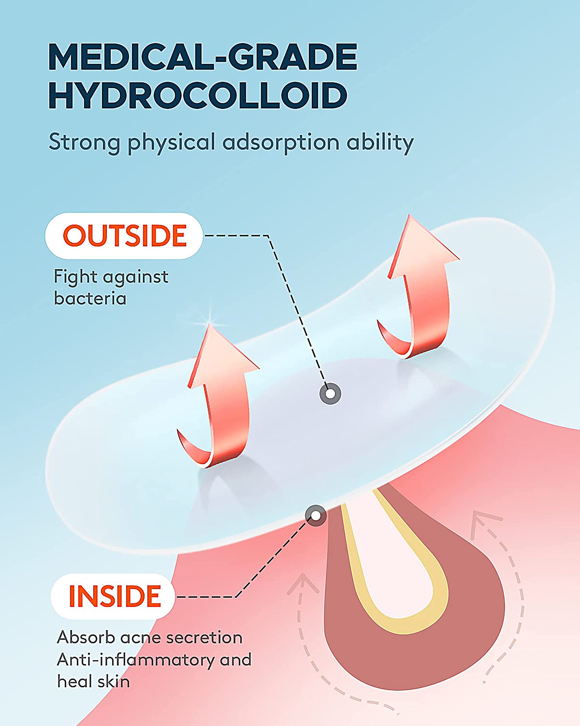 • Blends Seamlessly into Skin: The thin sticker with a translucent matte finish keeps your pimple under wraps day or night. You might just forget you’re even wearing it.