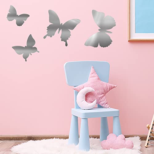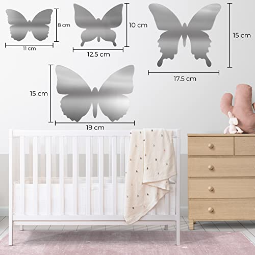 MAPPERZ Butterfly Mirror Wall Stickers, Removable Acrylic Mirror, Silver Self Adhesive Mural Stickers Decal for Home, Room, Living Room, Bedroom, Dining Room Decoration, Pack of 4 Butterflies