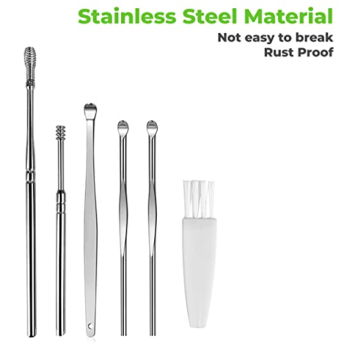 MAPPERZ Ear cleaning tool / ear wax cleaner / earwax cleaning tools / ear cleaning kit / 6 Piece Ear Cleaner Tool / Stainless Steel Ear Curette Safety Cleaner with Brush and Storage Box/ Earwax Removal Kit - Set of 6