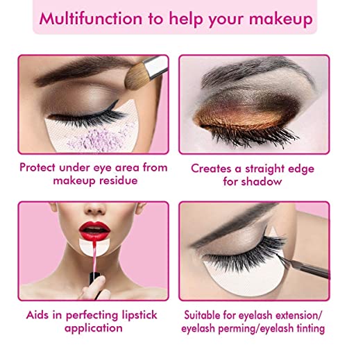 Details: The unique half moon shaped shield perfect for protect under eye area from makeup residue. Protects under eye area from eye shadow fallout. The ultimate Multi-Tasking Beauty tool hands-free, disposable, Time-saving. Eye shadow stickers makeup tool in perfecting lipstick application. Eye shadow pad giving women the confidence they need to apply eye makeup protects under eye area from eye shadow fallout self adhesive hands free saves time.