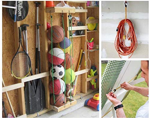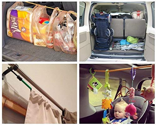 Details: Description The elastic bungee is elastic and are resistant to air and wind pressure. These ropes are extremely tough, high-stretch, woven polypropylene braiding covering a strong natural rubber latex core. The cord is light-weight, strong, wear-resistant and long lasting. Capable of stretching under load to about twice it's mentioned length. Lightweight, portable, and very sturdy making it portable for traveling and camping, as well as home use. It also can be stored with ease as it, Wrap it around ANYTHING and hook it to itself to hold it up; the two metal hooks are handy. This clothesline is very easy to hang the clothes, it fits anywhere you need it to. Easy to hang up and holds well. Easy to take down when not needed. The large capacity strong portable clothesline can take enough weights for wet clothes and sheets without falling or breaking., able to hang several loads of wash on this without the aid of additional hooks, you can use hangers or clothespins.