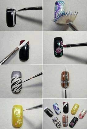 Details: MAPPERZ NAIL ART BRUSH:-Functionalities: Flat Fan Brushes: Used to draw multiple lines simultaneously. Pattern Brush: Used to draw fine patterns and acrylic nail art. Striping Liner Brushes: For drawing fine lines. Flat Brushes: Perfect for UV Gel nail art and for painting on a thick line of color on your nail. Oblique Angled Brush: For 3D Flower Effects Drawing Brush: For line drawing such as Zebra Stripes Petal Brush: For drawing leaves and petals.