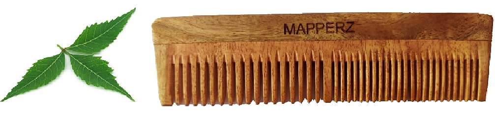 Mapperz Organic Pure Neem Wood Comb for Women & Men | Hair Growth | Anti-Bacterial, Dandruff Remover & Hair Styling Comb | Handcrafted (Regular)