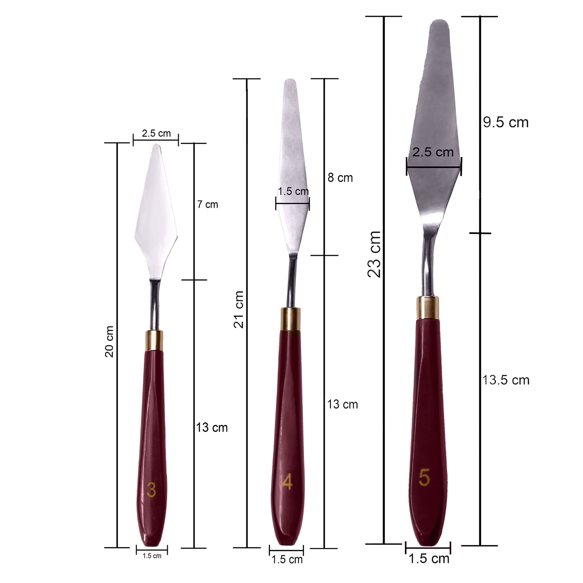 - Package Content:- 1 Knife of no. 1 premium quality stainless steel artist palette knife set with sturdy comfort-grip wooden handles. Our knives are made of stainless steel, which is easy to clean and not easy to be corroded and rusted. The handle is made of wood. It is ergonomic and feels good, making your painting more fluent.