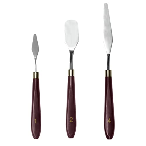 MAPPERZ Palette Knife Painting Stainless Steel Spatula Palette Knife Oil Paint Metal Knives Wood Handle Color Mixing Set for Oil, Canvas, Acrylic Painting-Lightwish, (No. 1, 2, 4), Pack Of 3