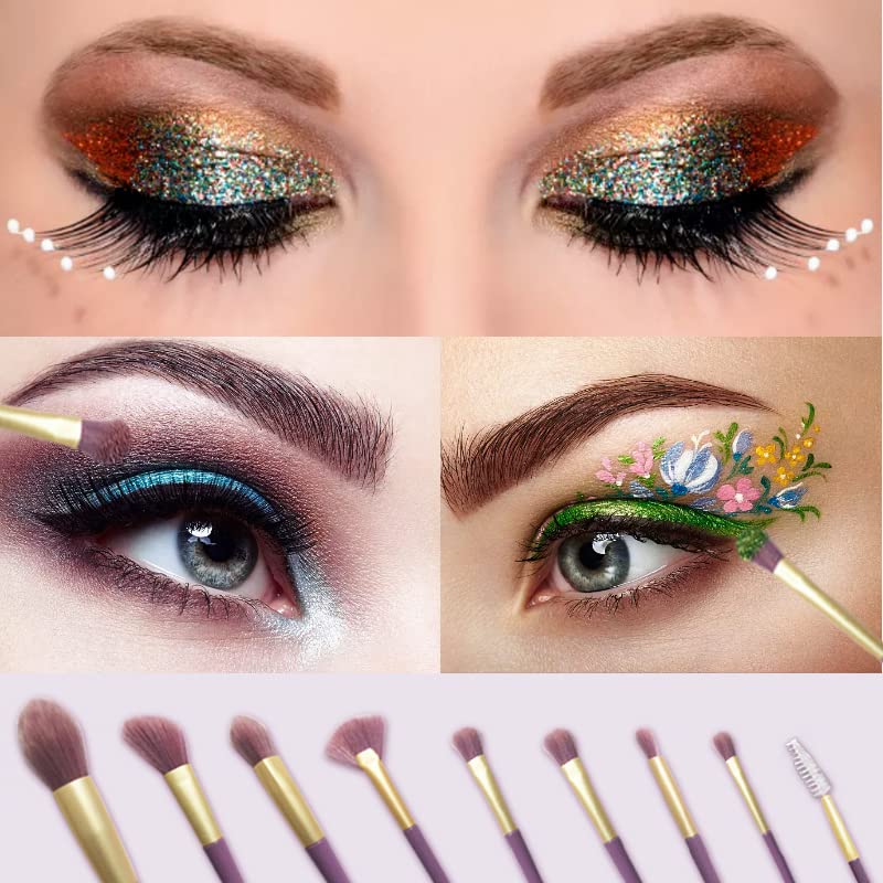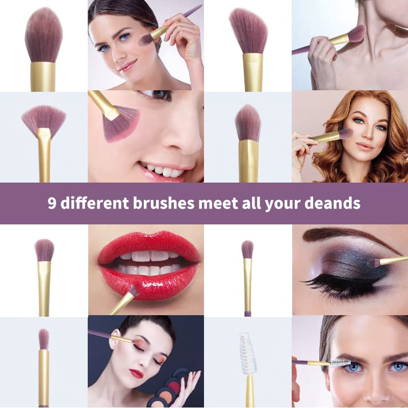 • 9-PIECE BRUSH COLLECTION:- Cover all your needs of all Your Makeup. Using blending brush, eyebrow brush, eyeshadow brushes and so on can give you results similar to makeup applied by a professional makeup artist!