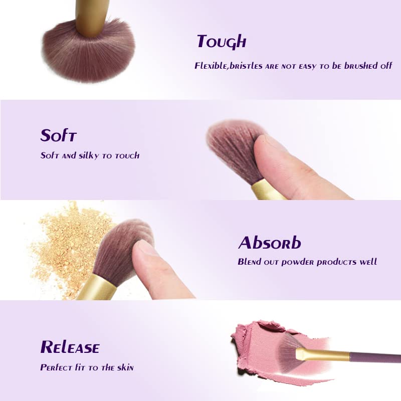 • Vegan & Cruelty-Free Bristles:- The bristles are well made of durable synthetic fiber - soft and silky nylon, ensuring for long time use. All the makeup brushes are fine and dense, suitable for even the most sensitive skin. With a great holding power of powder, the brushes would be a good helper to create a flawless look.