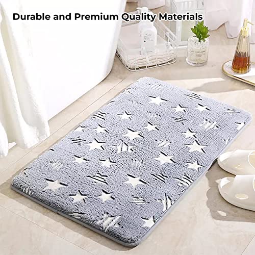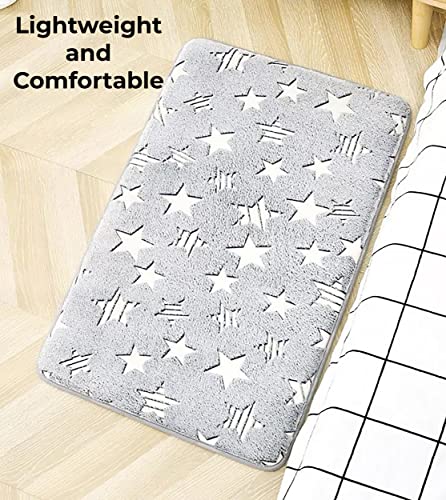 Details: Glow In the Dark Rug Want your kids to have something to focus on as they drift off to sleep? This area rug glows in the dark to help little ones feel cozy when going to sleep. Just lay the rug flat under a bright light for some time to charge, then turn the lights off to see the glow. The Glow Effect can last about 30 minutes The patterns on our carpets are designed with many unique elements, including moon,star,dinosaur and universe,meet the preferences of kid with different personalities. These patterns made of special material,after being irradiated by light, it can glow in the dark.Can make your bedroom decoration mysterious and vivid.Your kids will love it. Non-slipThousands of anti-skid points on the back of the carpet keeps the rug in place on wooden or other materials floor.Both children and pets can play happily on the carpet. Soft & Comfortable These Cotton Rugs are more soft, cozy, comfortable, you will enjoy how soft they feel beneath your feet. Its entire top surface offer a beautiful appearance, interesting texture, and a rich feel. No shed hairThe microfiber bath rug combines new technology, more soft and more density. Cozy, fuzzy, comfortable, no shedding! Thickness The glow in the dark rug is made of height premium thick, soft and absorbent microfiber fibers. Bath rug soft pile can soothe tired feet and shield toes from the cold floor.