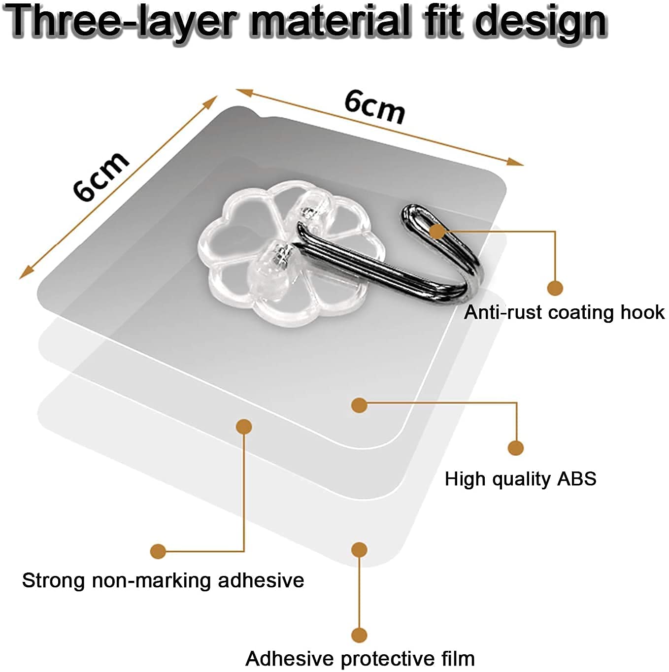 Details: Before installing the adhesive hook, please make sure the surface is clean, dry, free from dust and oil, and wipe it dry first. Remove the transparent film on the back of the hook. Paste on any smooth surface and press it tightly to remove any bubbles. Maximum load: 10kg. We suggest you to use the adhesive hook about 24 hours later after you stick it. Features and Advantages: Heavy Duty Self Adhesive Hook Rust-less, waterproof & oilproof No tools, no drilling, no screws Remove and Reuse Material: PVC+304 Stainless Steel Max load up to 15 kg Rotatable Angle: 180° Specifications: Color: transparent Transparent material: PVC material+ Quality stainless steel Package Quantity: 1 set of 12 hooks Dimensions: 6 x 6 cm How to Remove: Use a hair dryer to heat the adhesive hook. Press on the center of the hook and slowly remove the adhesive hook from the wall. Wash it and allow it to dry naturally or using a hair dryer before use it again. Notes: Do not hang overweight, expensive or fragile products. Do not use in high temperature environment (no more than 180 degrees). Applicable to all kinds of smooth surfaces, such as ceramic tile, marble, glass, stainless steel, wood, metal or plastic. Not suitable for wallpaper, paint, painted walls and rough surfaces. Once stuck to the surface, the wall may be damaged.
