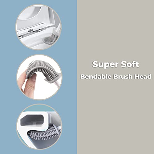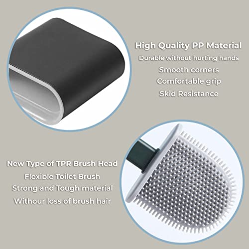 MAPPERZ Silicon Toilet Brush with Slim Holder/Flex Toilet Brush Anti-drip Set Toilet Bowl Cleaner Brush/No-Slip Long Handle Soft Silicone Toilet Brush with Wall Hook - Multicolor
