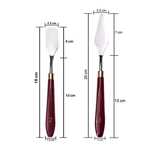KNIFE PAINTING: Great assortment for Mixing, Spreading, Scumbling, Spreading, Scratching, Large Paintings, Murals, Theater work. Good choice for artist,hobbyist,kids,students and adults. Complement your painting supply arsenal with this go-to knife set boasting assorted steel blade shapes and easy-grip wood handles.