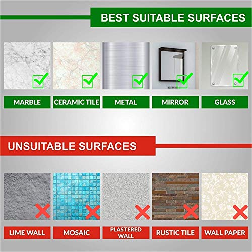 • Easy to use. Peel off the cover and install. No damage to wall and tool needed. Please check your wall before purchasing.Suitable for smooth hard surfaces, like tiles, marble, tempered glass, etc.