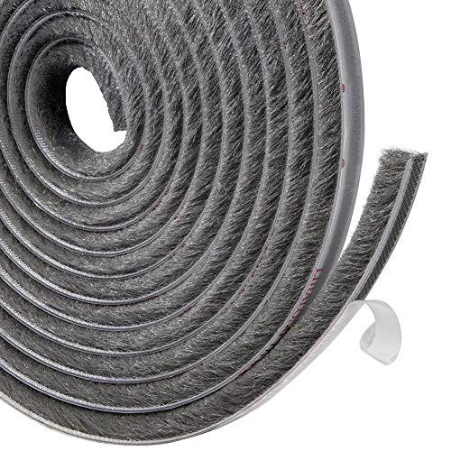 MAPPERZ Weather Stripping Brush Seal Tape for Sliding Windows & Doors Frame Side, Self Adhesive Door Brush Seal Strip for Soundproofing, Windproof, Dustproof, Stronger Stickiness, 10 Meter Long, Gray